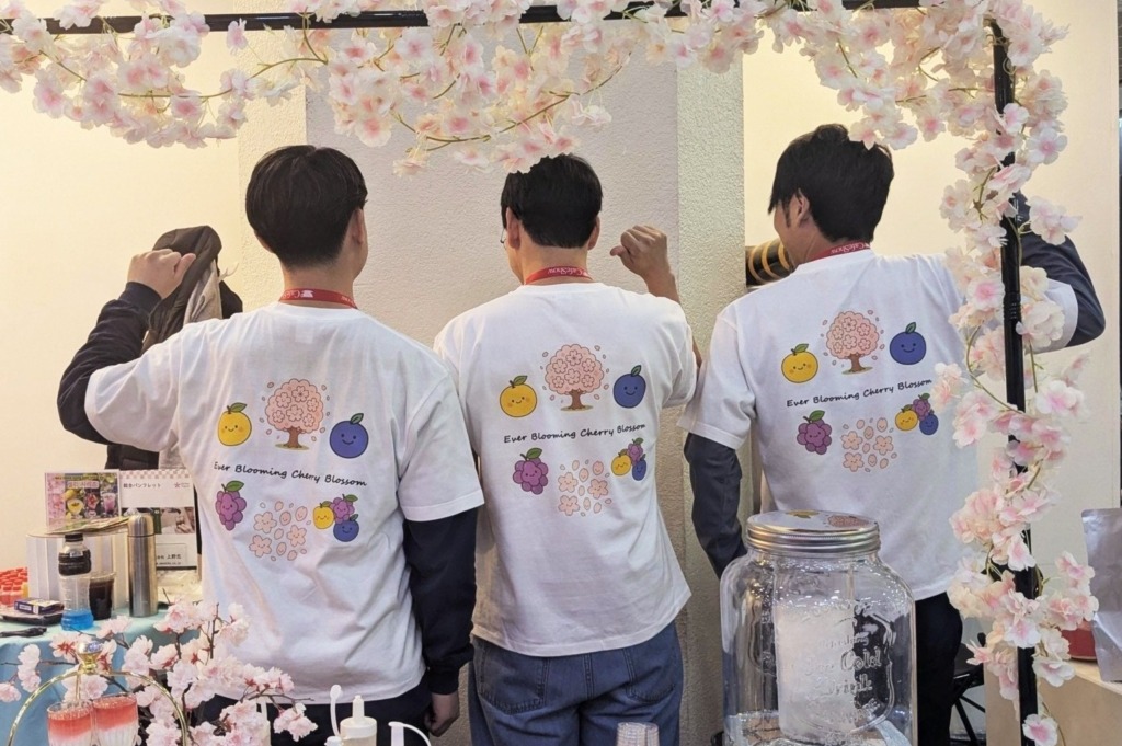 桜がほんのり香る休憩スペースも用意し、来場者の目を惹きました♪